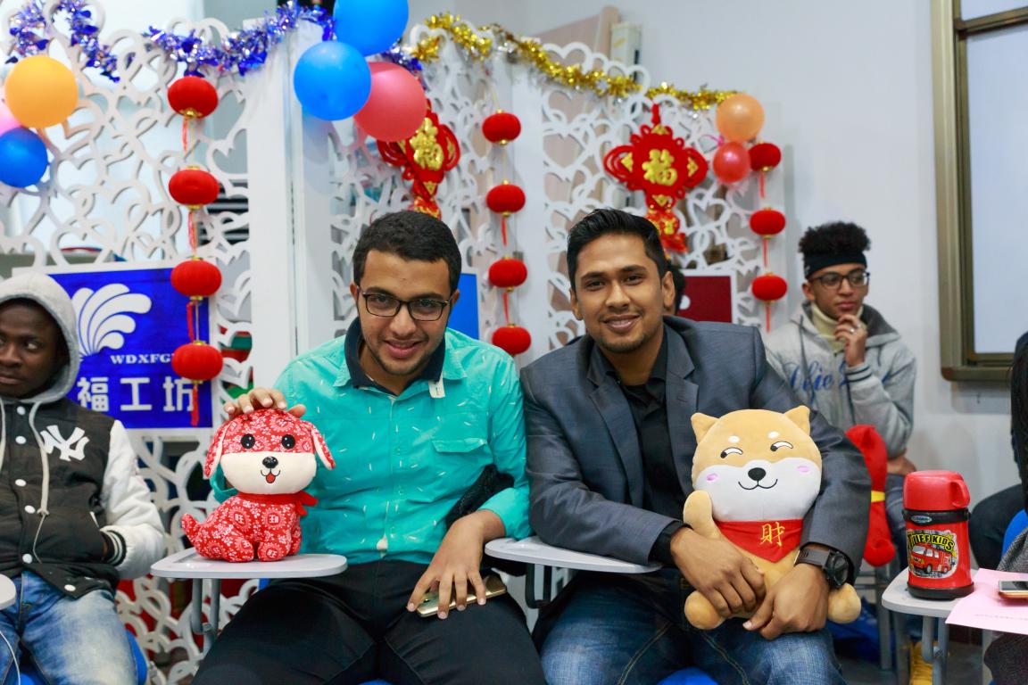 与会领导和老师们为每一位国际学生送上狗年吉祥物,与国际学生共进午餐,在温馨的氛围中听国际学生畅谈新春感想,欣赏他们表演歌曲和中国武术。塔吉克斯坦籍2017级商务汉语专业学生AMIROV RUSTAM说“今天,学校领导和老师们不顾假期专程赶到学校与我们一起过中国年,我真的很感动,也很感激。国际家庭大团圆的温馨氛围让这个时候我特别想念自己的家人,想与他们分享在中国过春节的切身感受。这是我从未有过的感觉,这或许是印证了中国古诗‘独在异乡为异客,每逢佳节倍思亲’吧。”