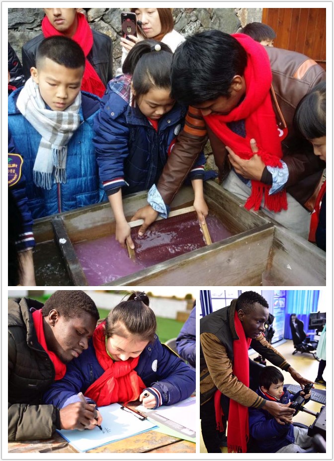 参加活动的国际学生有些是第一次在温州过年,有些是第二次在温州过年,但是近距离与温州小朋友家庭亲密互动还是第一次,他们充满好奇与期待,早早来到学院一楼学生会办公室等待。活动现场,1-2名国际学生结对1个家庭,当担国际文化小使者的新田园小学的小朋友与家长一起分别向结对的国际学生送上象征吉祥如意、红红火火的大红围巾,国际学生时而用简单的英文、时而用简单的中文与小朋友及家长进行交流,很快他们就熟络起来了,还向小朋友及家长介绍了温大校园,带着他们体验了航空实验室的模拟飞行。下午,国际学生跟随结对家庭,体验了东山书院的古法造纸术和木活字印刷术,步行了有着千年历史和丰富的文化底蕴的印象南塘,领略了七都的自然风光和生态农耕特色,游览了以“中国四大名屿”和“瓯江蓬莱”而著称的江心屿。