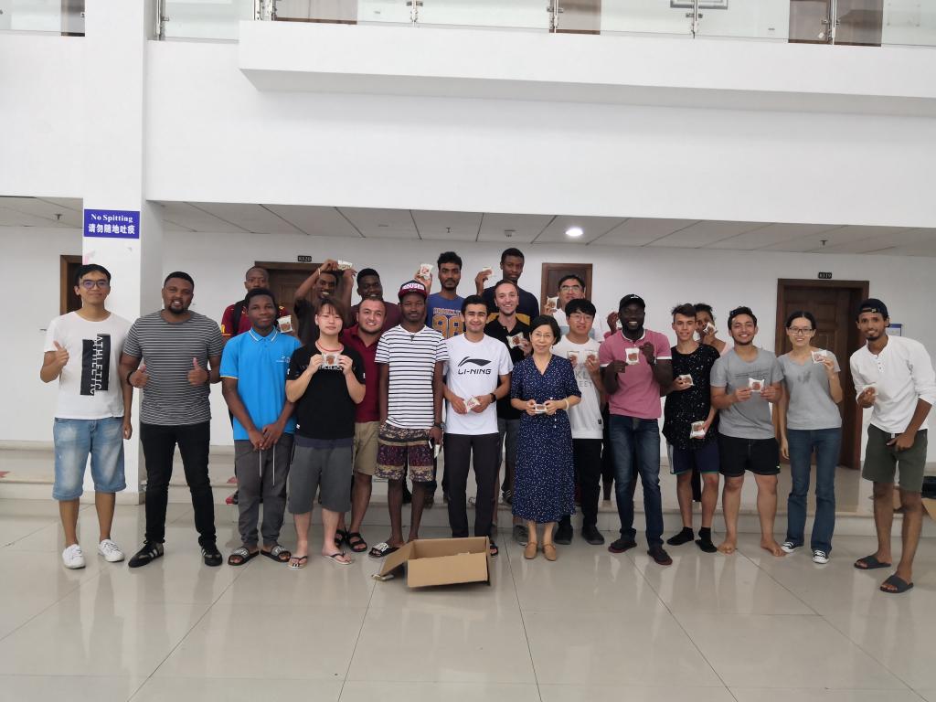 党总支书记叶苗带领辅导员走访国际学生D区和专家楼公寓,为国际学生送上中秋月饼和节日祝福。来自加纳的ADOFO MICHAEL ADJEI收到月饼很开心,他说:“我在中国三年,每年都能在中秋节的时候收到学校给留学生准备的月饼,这是很好的礼物,也非常美味,我很喜欢吃。中秋节在中国代表着团圆,虽然我们现在不能和家人团聚,但学校给我们举办的活动,让我感觉很幸福、很温暖。”