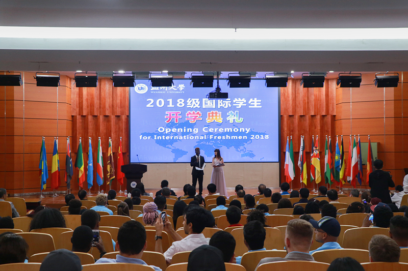 2018级国际新生开学典礼在岩松堂雁山厅举行。温州市人民政府外事侨务办公室副主任周怀中、高教园区社区民警陈海敏、色情导航