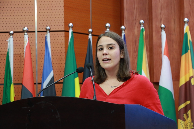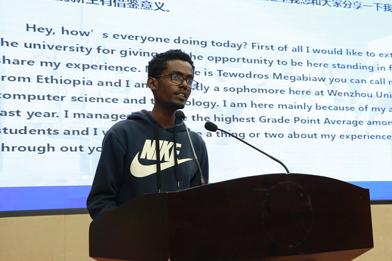 不同以往的是,本次开学典礼的主持由两位国际学生来担任,采用中文、英文交替的方式宣读议程。学生代表发言也是本次开学典礼的亮点之一。来自埃塞俄比亚的2017级国际本科生老生代表MEGABIAW分享了自己的求学经历,建议新生要有良好的时间规划,走出自己的“舒适区”,融入中国的这个新家庭。来自意大利的2018级国际研究生新生代表VIVIANA用流利的中文发表了演讲,发音标准,赢得全场热烈的掌声。值得一提的是,VIVIANA在2017年曾作为交换生来色情导航
