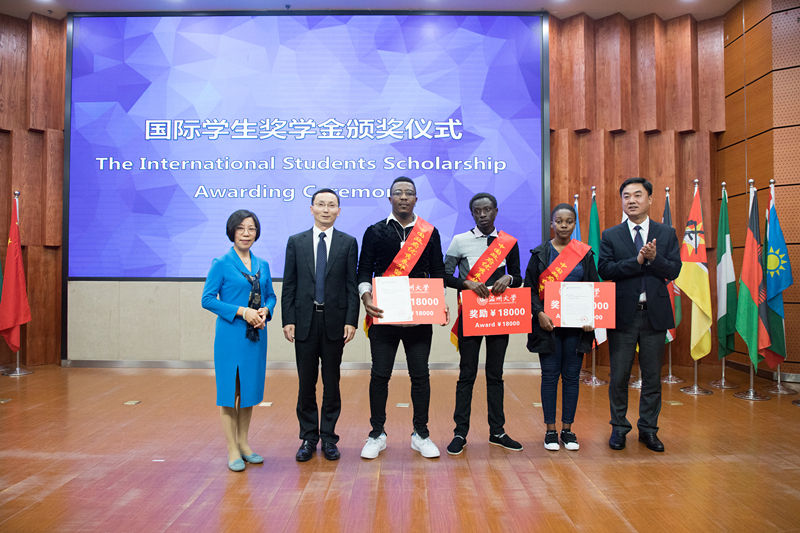 校长奖学金一等奖、浙江省政府奖学金及优秀来华留学生奖学金获得者进行颁奖,勉励在上一学年中表现优秀的国际学生。颁奖仪式结束后,副校长钱强为国际新生代表佩戴校徽。