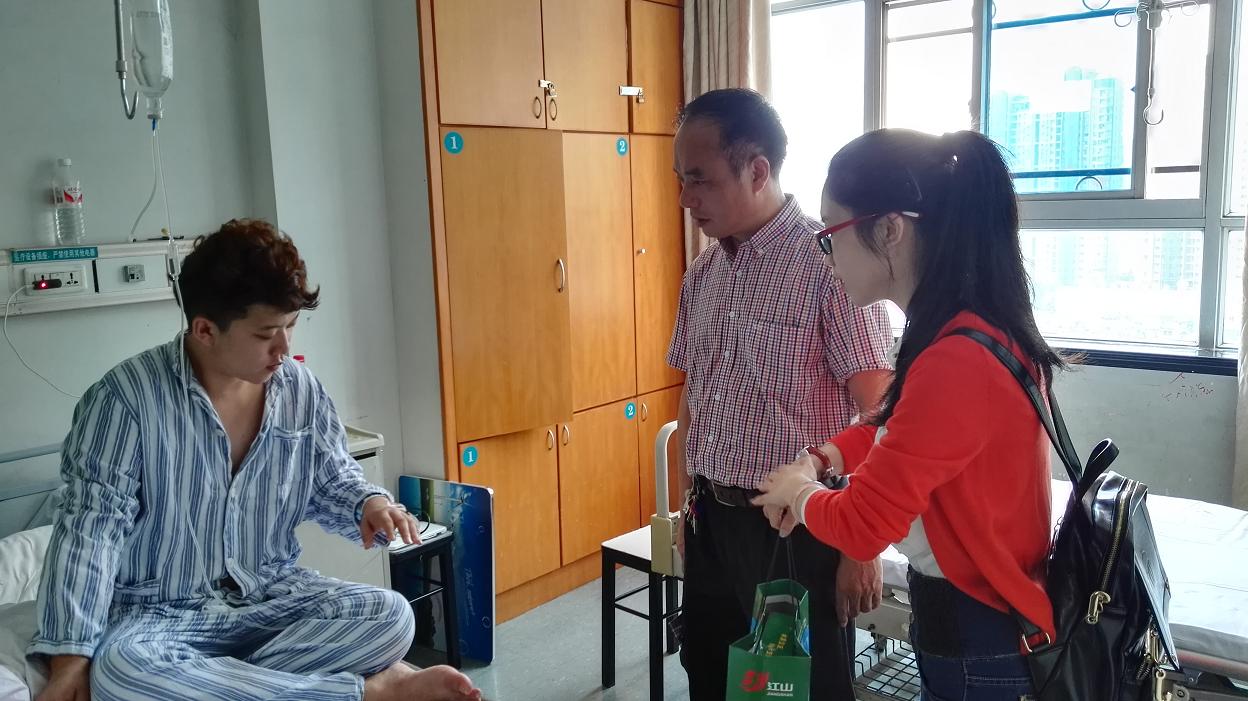 9月29日晚上李相珍同学成功进行了一场外科小手术,朱书记再次组织相关人员到医院进行探望,并就手术施行情况、术后恢复以及相关防护措施和主治医生再次进行了沟通。朱书记宽慰李相珍同学手术非常成功,交代他术后需要注意的相关事宜,并期望他早日康复,重返国际合作学院的大家庭。