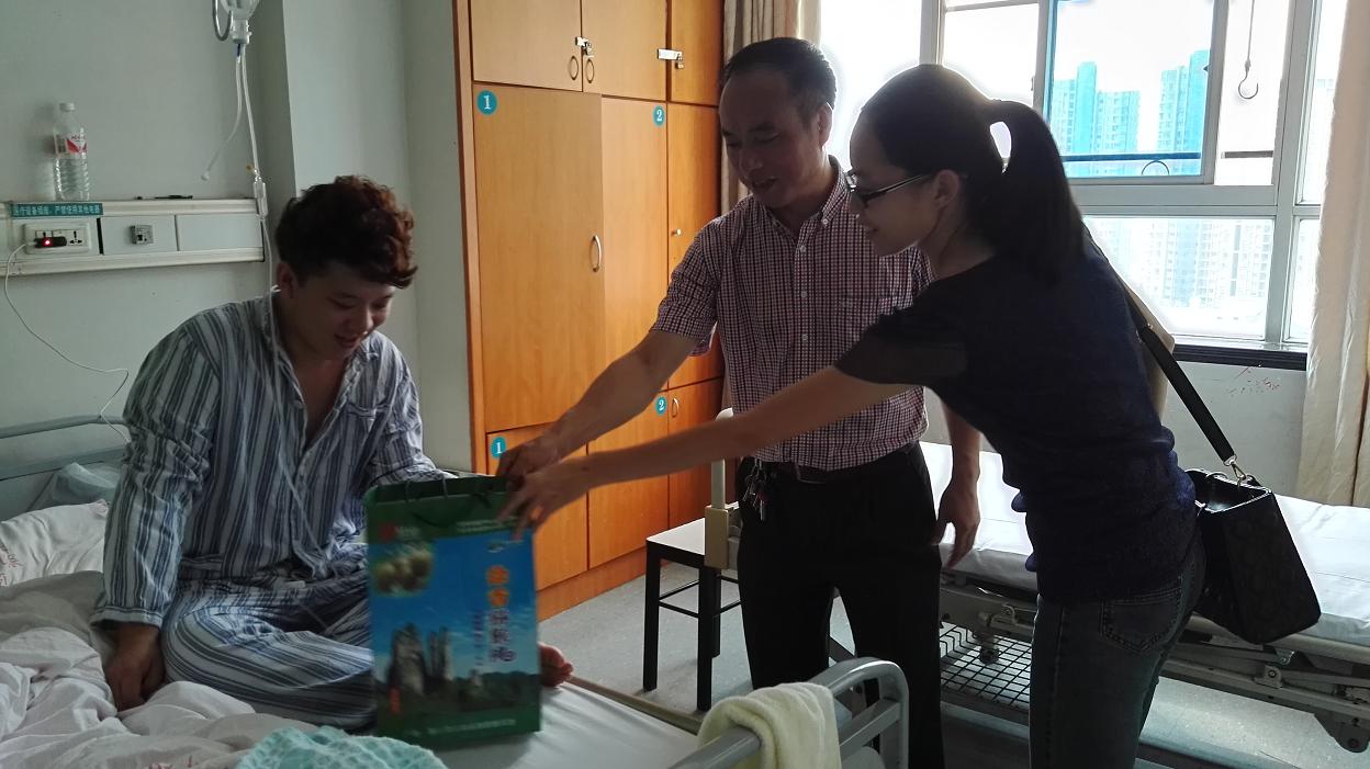李相珍同学对于朱书记带来的学院问候表示十分感谢,他表示出国在外刚受伤时确实心情比较沮丧,但学院的关怀,书记父亲般的温暖,让他体会到家的温馨感觉,也给了他更多的精神力量。同时,李相珍同学表示会安心养伤,争取早日出院,重返校园。