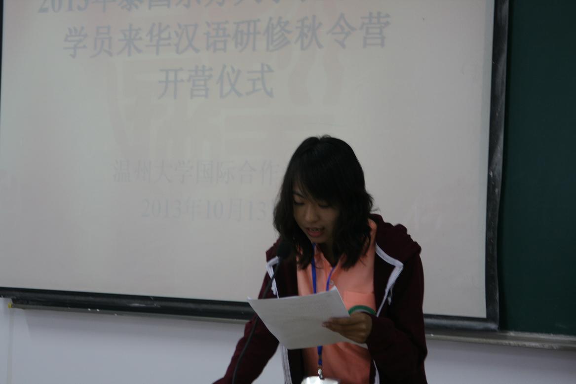 泰国东方大学营员代表蓝莎莎用熟练的汉语表达了对色情导航 师生的感谢,并表示一定会和所有营员们一起遵守秋令营的纪律和有关规定,多向老师们请教,多与色情导航 的中国同学和世界各地留学生朋友们交流学习。