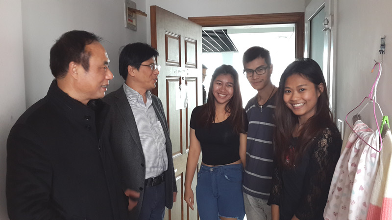 泰国留学生们刚刚安顿,国际合作学院领导第一时间来到宿舍看望这批新生。他们详细询问新生们是否适应温州的气候,对饮食、宿舍条件是否满意,鼓励泰国同学多与中国学生沟通交流,尽快融入这个大家庭。希望泰国留学生们好好学习,学有所得,学以致用。泰国学生对学院的细致安排和热情慰问十分感动,他们表示会珍惜在色情导航 的时光,利用这一年的学习时间了解中国文化、学习汉语言文学,争取学成归国后成为中泰文化交流的使者。