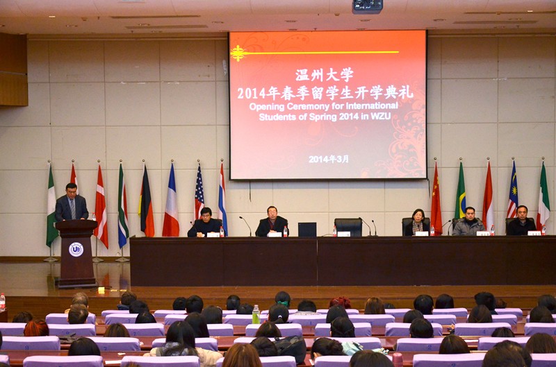 迎来了又一个留学新生开学季,育英图书馆报告厅里汇聚了一张张来自世界各地兴奋的新面孔。虽然此时窗外春寒料峭,但报告厅内却暖意浓浓,2014年春季留学生开学典礼在此隆重举行。副校长薛伟,国际合作学院、外事处、团委等相关部门负责人参加了典礼。