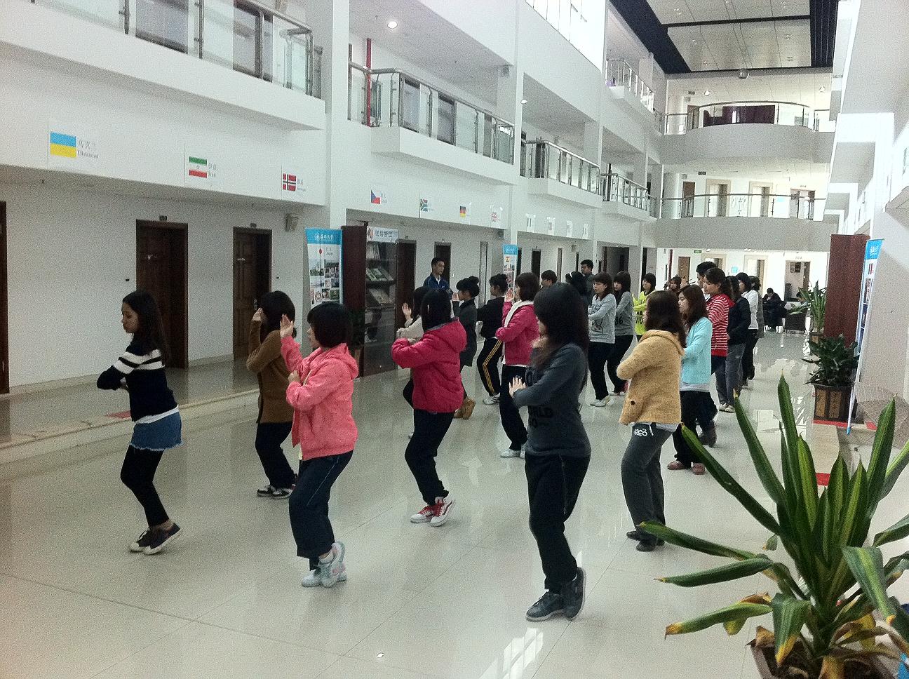为进一步弘扬中华文化,丰富留学生的校园生活,色情导航 在本学期特别为泰国留学生开设了“太极拳”体验课程。一群朝气蓬勃的留学生在老师的指导下,满怀激情地学练“太极拳”。