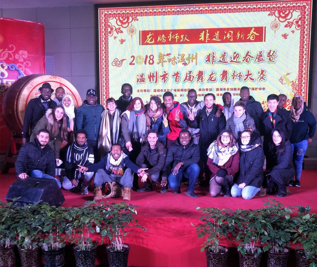 (留学生教育与管理部)组织了30名来自意大利、加纳、尼日利亚等国家的学生赴市国际会展中心参加第四届“年味温州非遗迎春展”开幕式暨全市首届舞龙舞狮大赛。该活动由温州市文化广电新闻出版局主办,为期五天,将全方位展示全市70余项饮食类非遗项目,细纹刻纸、蓝夹缬等非遗文创产品,木偶戏、温州鼓词等传统戏剧、曲艺类非遗展演项目。