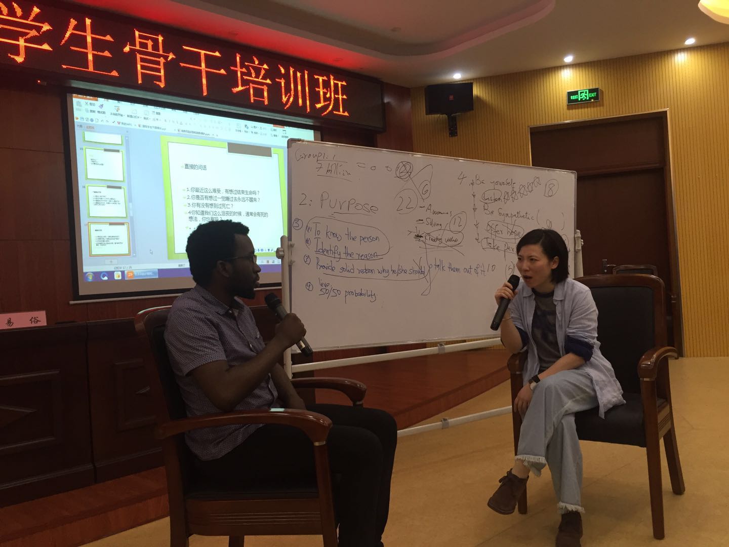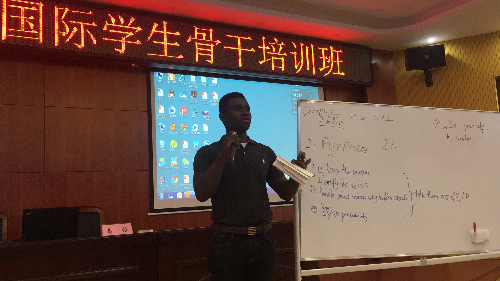 2018年4月14日,我校第一期国际学生骨干培训班在北校区3号楼203报告厅顺利举行,来自14个国家、8个学院和8个专业的65名国际学生骨干参加了此次培训。