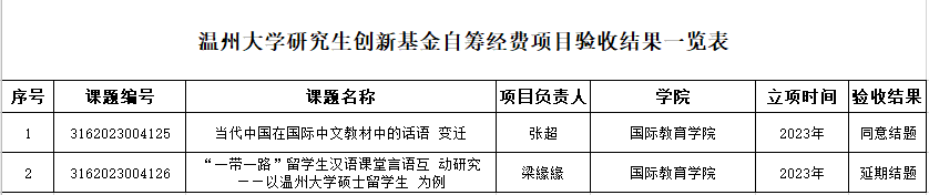 根据《色情导航 硕士研究生创新基金管理办法(2020年修订)》文件,对已到期的研究生创新基金自筹经费项目进行结题验收。经学院评审组评议,《当代中国在国际中文教材中的话语变迁》等2项创新基金项目结题情况如下。