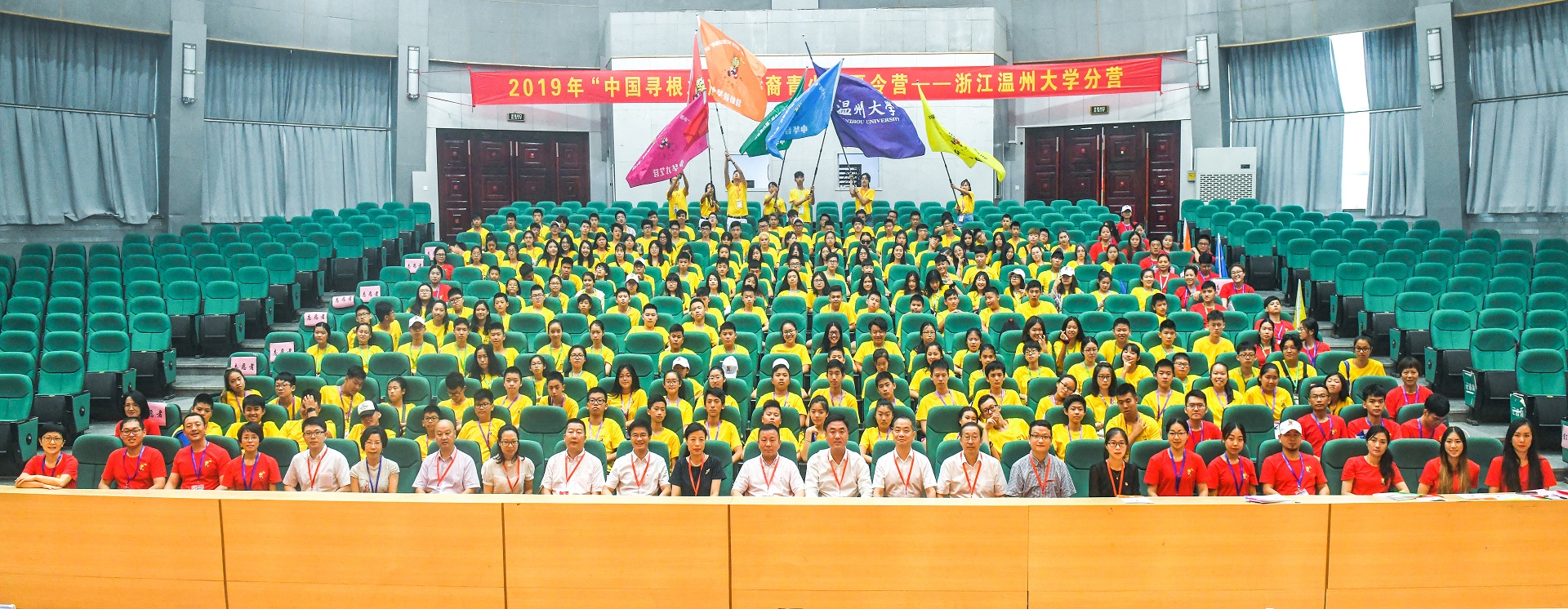 报告厅拉开帷幕,出席开营仪式的领导、志愿者以及营员在现场一起聆听这首代表华侨华裔心声的歌,歌声在报告厅久久回荡,每一颗澎湃的心也久久不能平静。