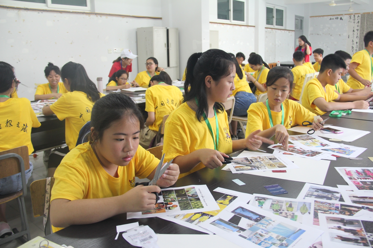 书法教室里,设计营的营员们正在跟着老师学习服饰色彩与搭配。结合了美术与流行的时装搭配艺术,也受到了大家的欢迎,专注的神情挂在了他们的脸上。