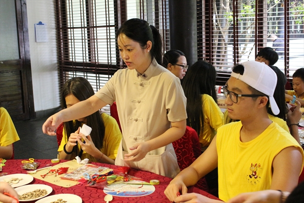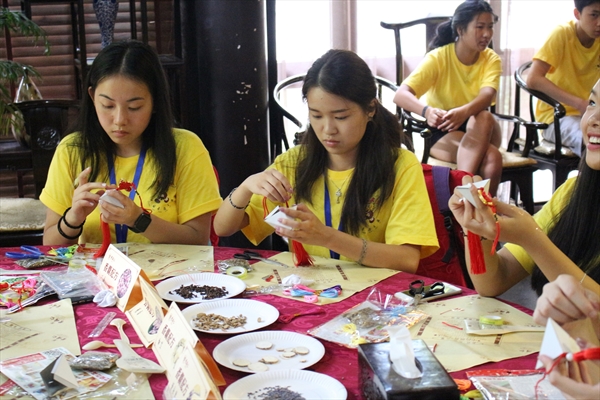 教授制作中药香囊的郑燕老师先给大家介绍了放在香囊内几种药材的功效,然后给大家示范了如何制作香囊。每一位营员都学得十分认真,他们纷纷表示做好之后要将香囊送给自己最亲近的人。