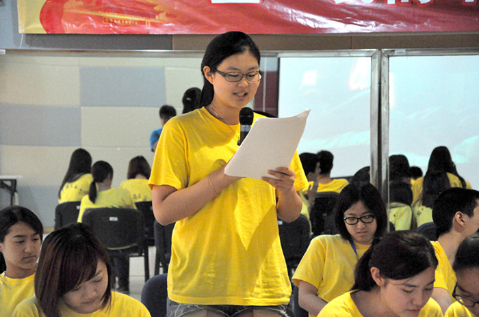 团委的胡震鹏老师来为营员们做专业指导。胡老师先让营员们每人自由选取一小段诗歌进行个人展示,然后针对性地纠正大家朗诵中普遍存在的问题,并亲身示范,指导营员们在朗诵的时候如何吐息,如何停顿,如何控制语音、语调和语速,如何把握抑扬顿挫,如何体会每一个字在诗歌中所起到的作用、表达的情绪,以及如何将自己的感情融入到诗歌的意境中、融入到朗诵的声音中,传递给听众。