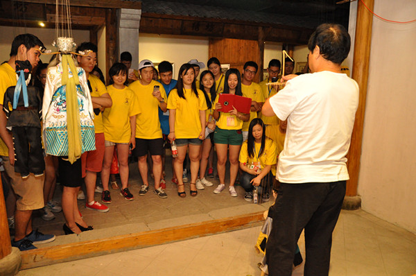 营员们在讲解员的带领下参观了温州非遗馆中的民俗馆、戏剧戏曲馆、造纸活字馆、夹缬馆、木偶馆、工艺美术馆、灯彩馆、廊桥馆等8个专题馆。瓯塑、瓯绣、细纹刻纸、永嘉昆剧、泰顺廊桥……众多来源于温州民间的“非遗”瑰宝通过图表、照片、实物、模型等多种形式生动地展现在营员们的面前。看着美轮美奂的龙档、巧夺天工的细纹刻纸、栩栩如生的青田石雕、金碧辉煌的石雕孔庙……营员们不时发出阵阵惊叹声。当讲解员介绍被列入联合国教科文组织“非遗名录”的“泰顺廊桥营造技艺”和“木活字印刷术”,营员们都由衷叹服古人非凡的智慧和创造力。