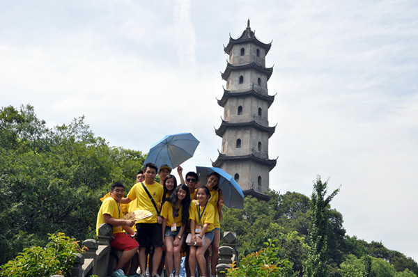 7月27日,2013“中国寻根之旅”夏令营“相约温州营”优秀华裔青年营营员们游览了素有“瓯江蓬莱”之称的中国四大名胜孤屿之首——江心屿。