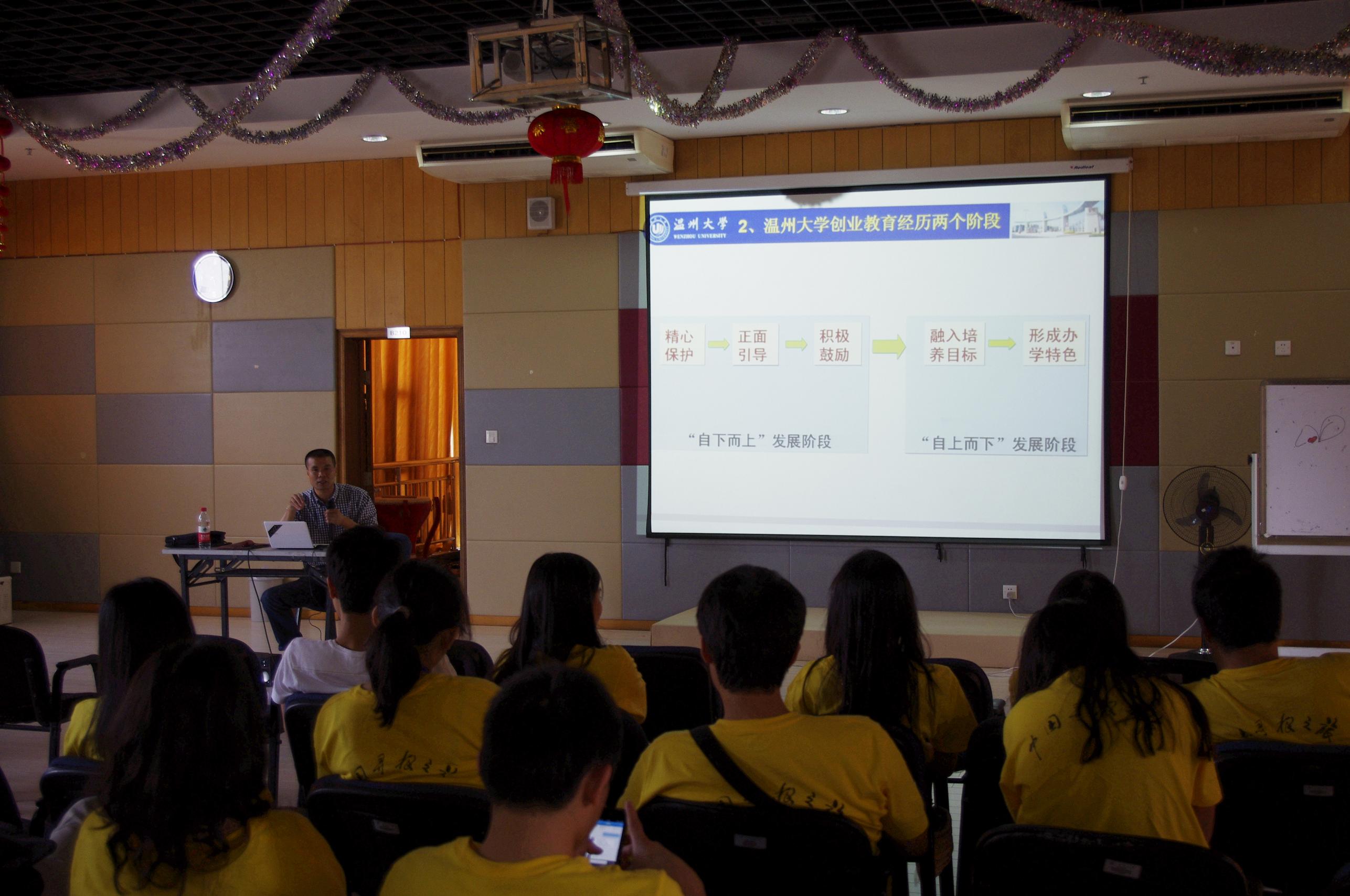 创业学院副院长黄兆信老师为海外华裔青年带来了一场关于大学生创业的温州模式的精彩讲座。