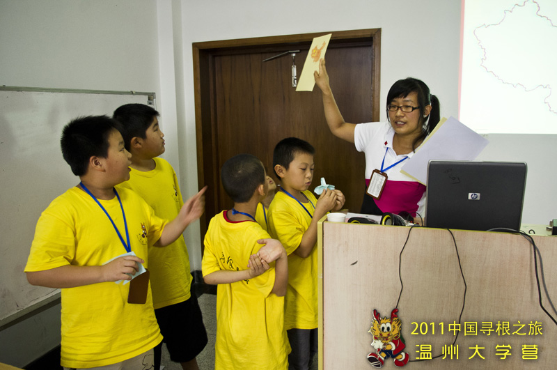 “大家知道在这个图上,我们的故乡在哪里吗?”7月21日下午,在2011海外华裔青少年“中国寻根之旅”夏令营温大分营的教室里,任课老师拿着一幅世界地图亲切地询问着台下的营员们。营员们快速而准确地找到了“东方雄鸡”,大声说道:“我们的故乡就在那里!”