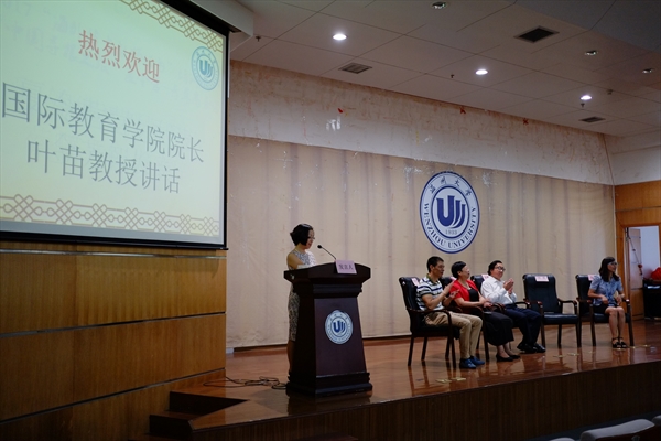 院长、留学生教育管理部部长叶苗教授致辞,她向海外教师和营员们介绍了色情导航