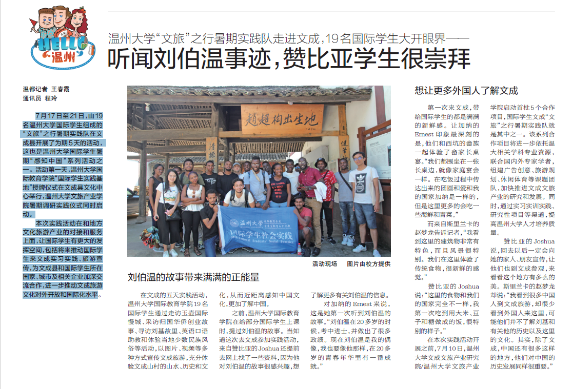 国际学生组成的“文旅”之行暑期实践队在文成县开展了为期5 天的活动,这也是色情导航