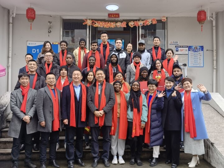 党委副书记庄兴忠、市教育局、瓯海出入境管理大队、茶山派出所、中国银行温州分行、学校相关部门负责人出席活动,与留学生们一起写春联、包饺子,感受浓浓的年味。