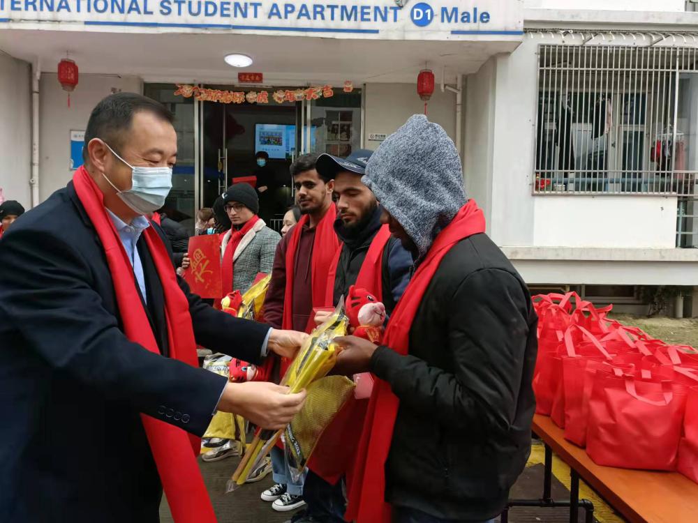 留学生宿舍,中外师生正在这里举行具有浓浓年味的迎接春节活动。