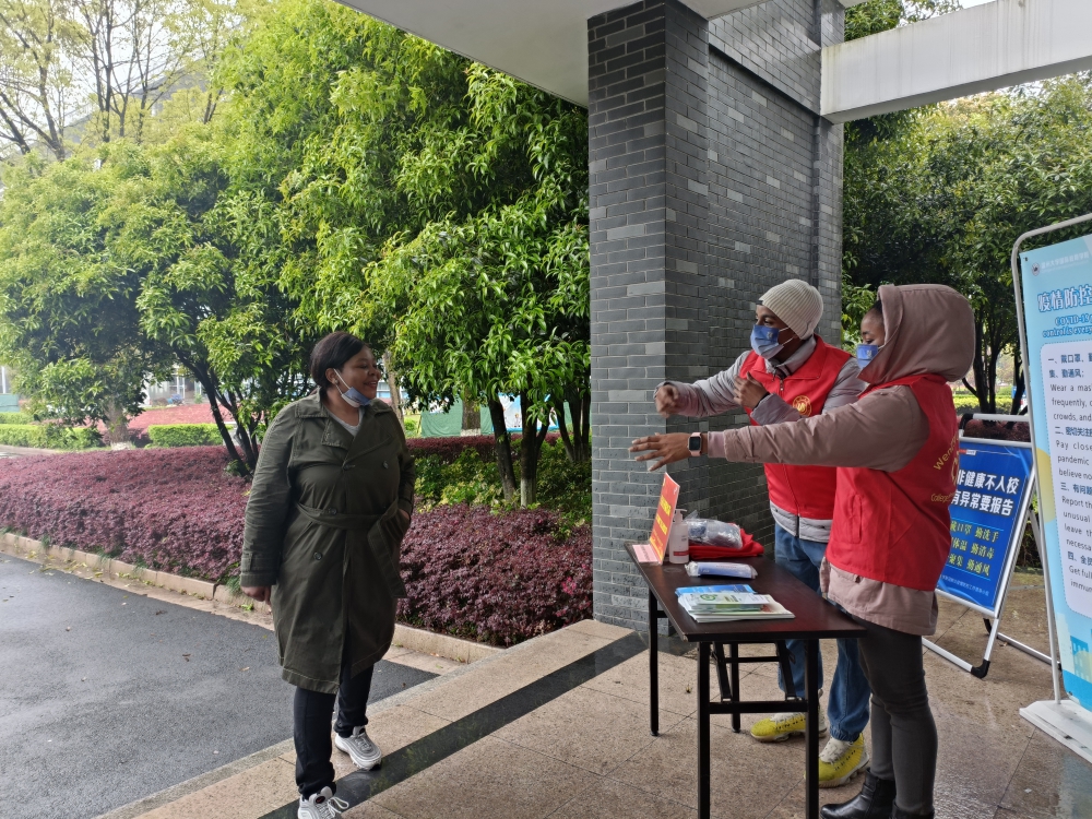 有来自津巴布韦、埃塞俄比亚、坦桑尼亚等70多个国家的200余名来华留学生在校。在学校的号召下,25名留学生主动组成温大留学生疫情防控志愿服务队伍,在每日测温、政策宣讲、行程排查、防护提醒等方面发挥积极作用,助力校园疫情防控。“我本来就喜欢帮助别人。”来自尼日利亚的金微微是留学生志愿者中的一员,“通过志愿服务我也学会了很多防疫方法,每天跟家人视频的时候我就教给她们,比如勤洗手、戴口罩。”