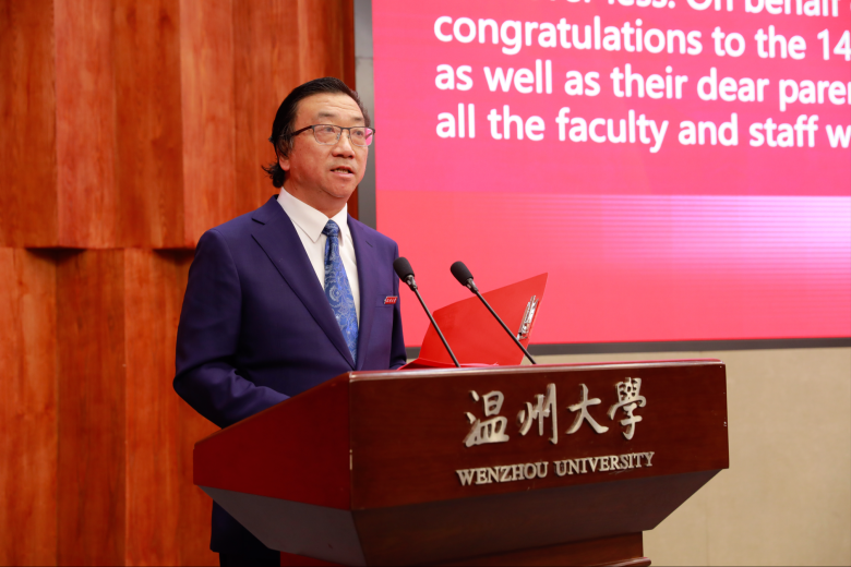 副校长蔡曙光在致辞中充分肯定了他们所取得的成绩,祝愿全体毕业生前程似锦,幸福安康。他表示,“独学而无友,则孤陋而寡闻”,希望同学们学习借鉴他人和他国文明的长处,成为学生祖国与中国长期友好交流的使者。