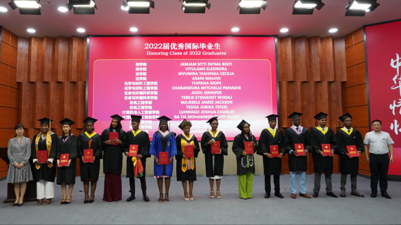 举行2022届国际学生毕业典礼暨学位授予仪式,146位国际学生顺利毕业。本次毕业典礼实行线上线下相结合的方式,境内外毕业生及家长、校友齐聚云端,共同庆祝这一喜庆时刻。