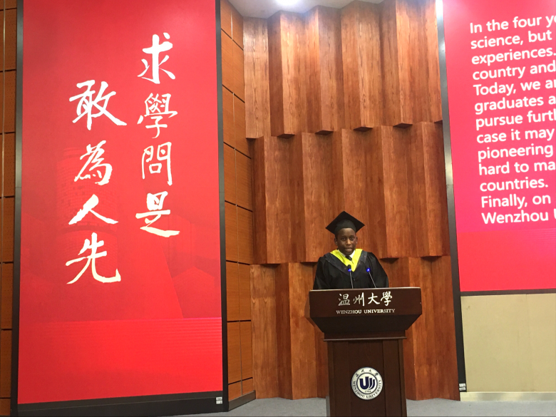 来自于坦桑尼亚的2018级计算机科学与技术专业陆求是代表本科生发言。他说:“我们或许选择继续深造、或许回到家乡工作。但不管哪种选择,我们都会秉承温大求学问是、敢为人先的精神,做好母校的大使,坚持为两国的友好发展而努力。”随后,研究生代表、来自于意大利2019级应用经济学艾兰,从意大利发来祝福视频,表达了对母校色情导航