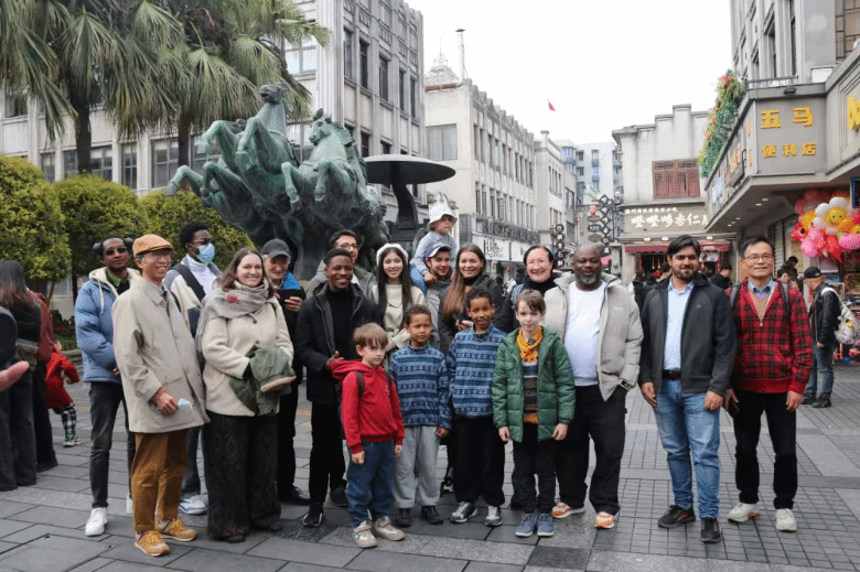 25日,温大留学生赴鹿城五马街参加了“让世界看见‘千年斗城’”活动。活动通过英文导游讲解五马历史文化街区、俄罗斯友人古筝独奏、书法家现场书写春联与“福”字和捣年糕等互动环节,让学生深入了解了温州古城的历史文化底蕴。