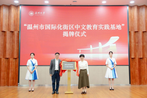 基地”揭牌,该基地将整合校地资源,打造有国际影响力的文化传播平台,助力温州城市形象的国际推广。楼了凡与林爱菊为“温州市国际化街区中文教育实践基地”揭牌,标志着校地合作在推进国际化社区语言服务方面迈出实质性步伐。