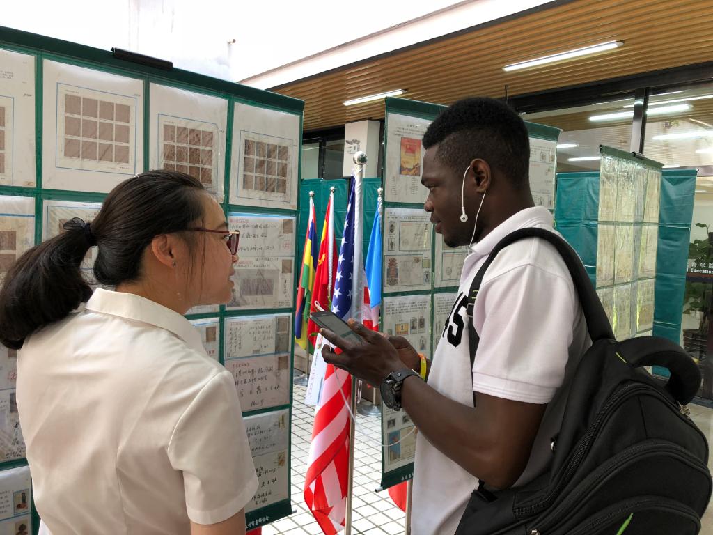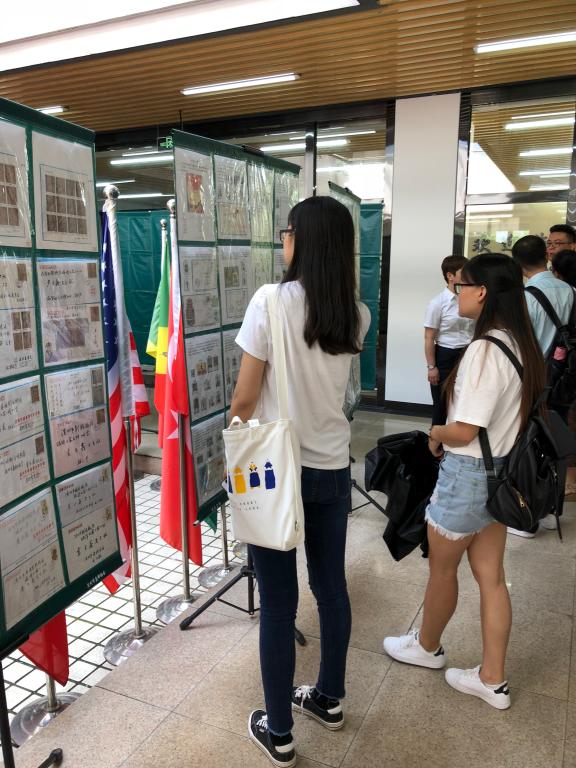 此次展品包括改革开放、建军、红楼梦、中国书法、生肖、世界遗产等十二套邮品内容。为宣传中国集邮文化,普及集邮知识,弘扬优秀中国文化,邮政公司工作人员准备了数百份精美的邮品送给参观者,并耐心地给学生讲解邮票的起源和三要素、我国邮票发行史、集邮文化等相关知识,受到中外学生的普遍好评。在展览现场不仅举行集邮知识有奖问答活动,更可自己动手,将自己的照片印制到明信片上,留作纪念。