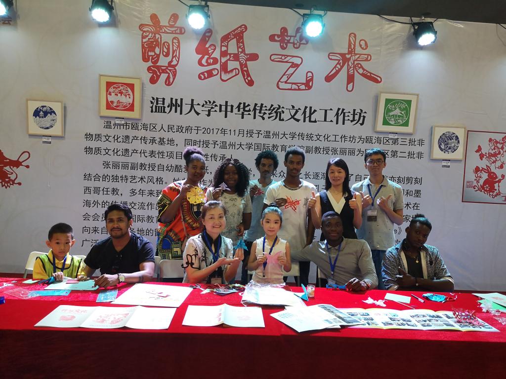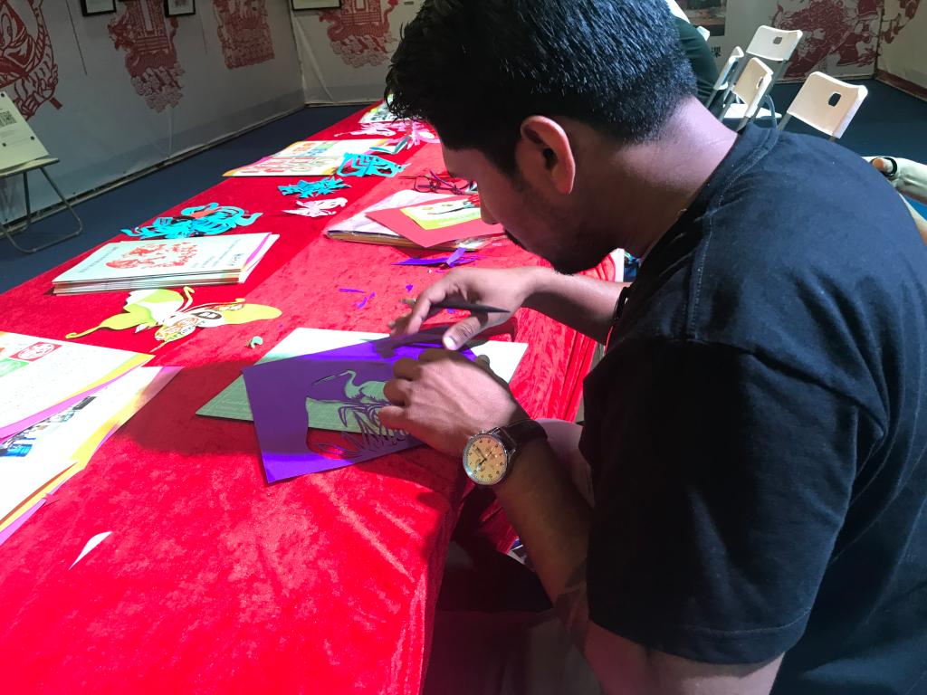童博会期间,我校国际学生们现场展示分享了剪纸艺术,寥寥数剪,车辆、花卉、果蔬、人物跃然纸上,形象惟妙惟肖,栩栩如生。现场吸引了不少小朋友们和家长驻足观看与互动,小朋友与洋哥哥姐姐们通过剪蝴蝶、剪汽车、剪窗花拉进了彼此之间的距离,通过指尖传递了中国传统文化。