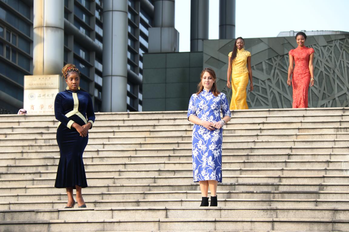 温州市新田园小学是我校国际学生实践基地友好合作学校,来自新田园小学的学生们为观众奉上一场精彩纷呈的表演。《千字文》、越剧《金玉良缘》脍炙人口,小学生们把传统文化的精髓演绎得淋漓尽致。开幕式上,国际学生汉服秀、旗袍秀、多国服装秀、歌舞表演也一一亮相。身穿传统汉服、旗袍的学生们缓缓走来,优雅如初,他们在舞台上行汉代礼仪,诠释他们眼中的中国传统文化。来自韩国、津巴布韦、尼日利亚、埃及等国的25名国际学生带来多国服装秀,各式各样的多国服饰在舞台上依次亮相,引起全场国际学生的共鸣。国际学生们在歌舞方面也不示弱,来自第二届国际学生十佳歌舞大赛获奖选手的精彩表演引起全场的阵阵掌声。