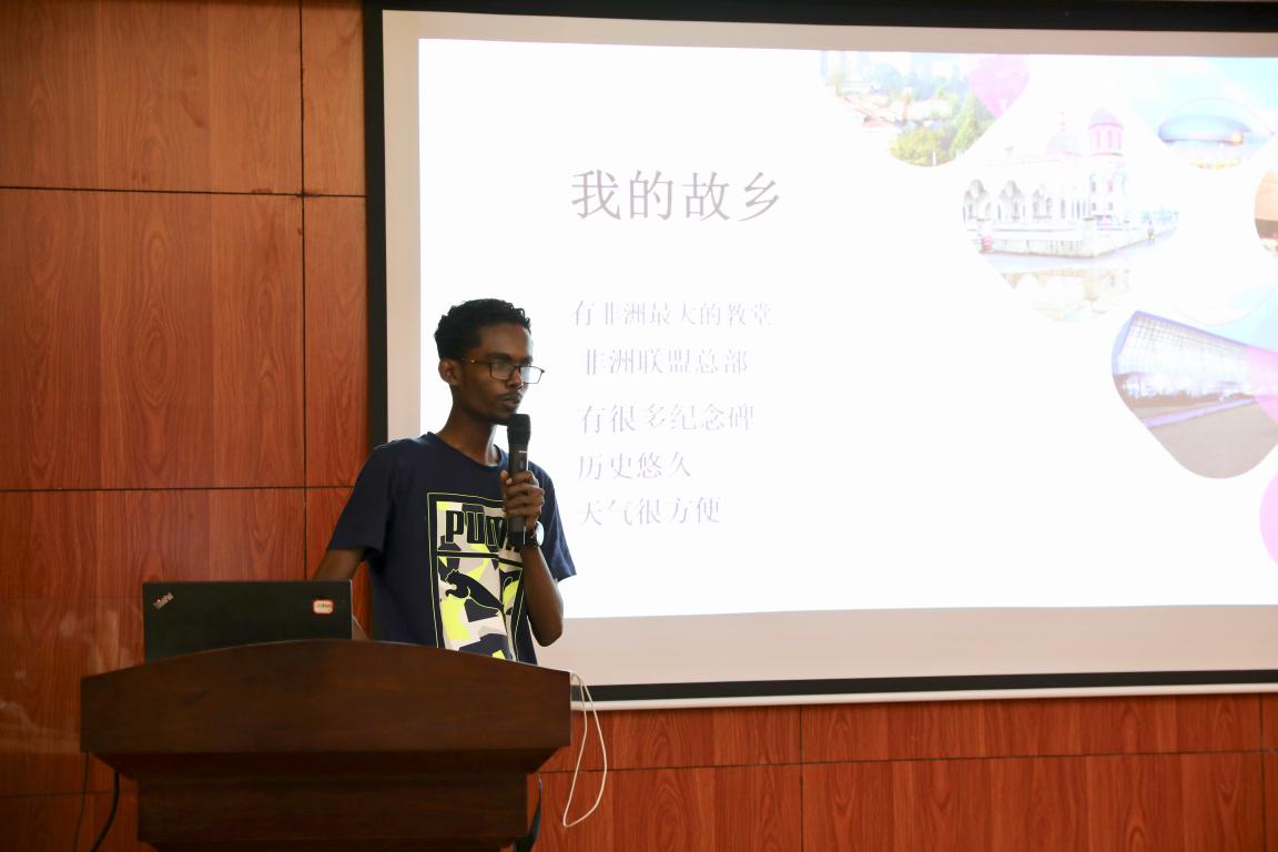 其中来自埃塞俄比亚的田阳明,自信十足的在舞台上向我们展示了他的国家。他不仅向大家介绍了他家乡特有的动植物,还向大家介绍了他家乡特色的穿着、咖啡以及喝咖啡的仪式。精彩的表现使他获得了演讲组的一等奖。