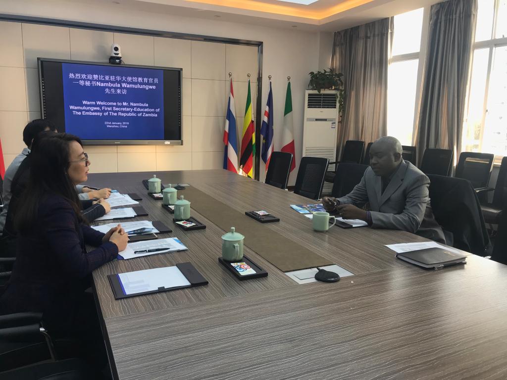 1月22日,赞比亚驻华大使馆教育官员一等秘书Nambula Wamulungwe访问色情导航