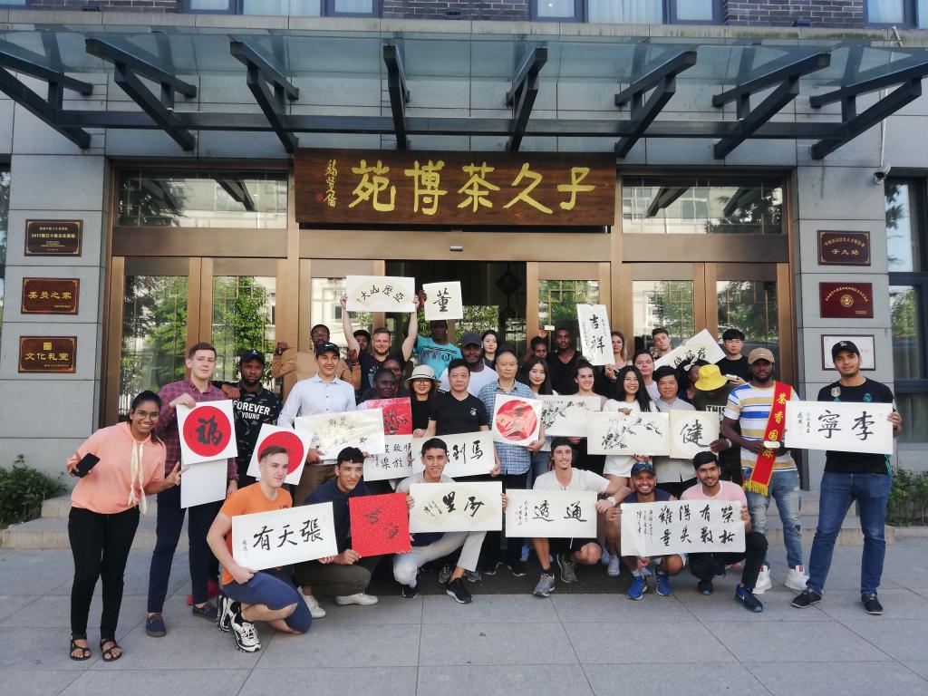 茶文化教学实践活动分为上午和下午两部分。上午,学生首先观看了新联村畲族热情洋溢的竹竿舞表演,之后学生在茶学博士—董占波的带领下有序游茶山,采摘茶叶,进行炒茶体验,了解茶文化。下午,全体语言生参观了子久茶博苑,观看了茶艺表演,学习泡黄汤品黄汤,学生积极参与,热情极高,对中国的茶文化有了深入的了解。随后,全体语言生在温州诗词楹联学会书法专家的指导下,学习书法,并获得了专家的书法作品馈赠。