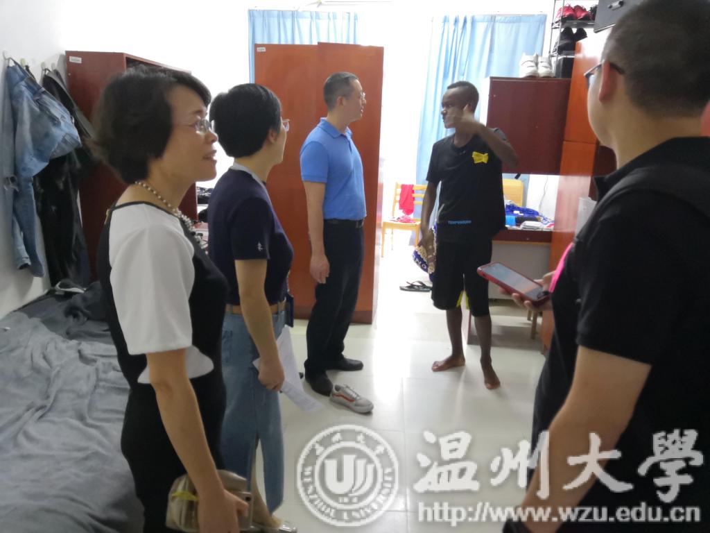 开展学生寝室走访暨教工党日活动,党总支书记林爱菊、党总支副书记张雪萍、副院长熊勇、副院长吴之欧与学生科辅导员前往国际学生公寓D区进行寝室走访慰问。