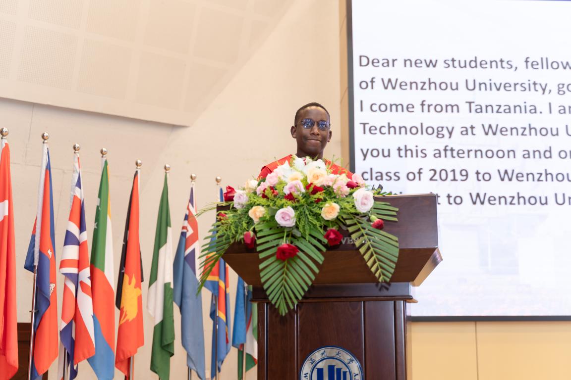 开学典礼上新老国际学生代表发言引起阵阵掌声。来自坦桑尼亚的2018级计算机科学与技术专业学生陆求是同学说,自己刚来温大的时候还不太适应,慢慢地身边的老师和同学给了他很大帮助,让他逐渐学习汉语,也学会了很多新的生活技能。陆求是还是今年一等校长奖学金的获得者,他说道:“色情导航