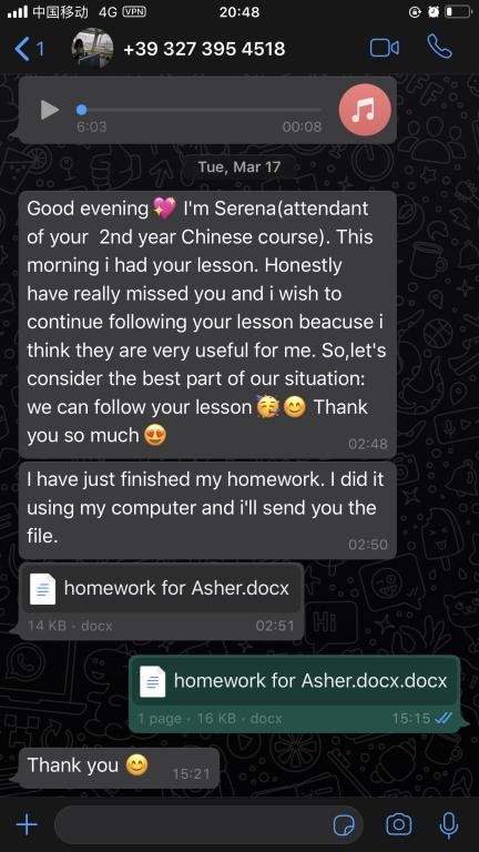 每一周,张珉璐都会精心把每个年级的两小时课程视频录制好,与音频、ppt、练习作业及一些额外的针对不同级别HSK的练习发送给意大利老师,意大利老师再上传至色情导航