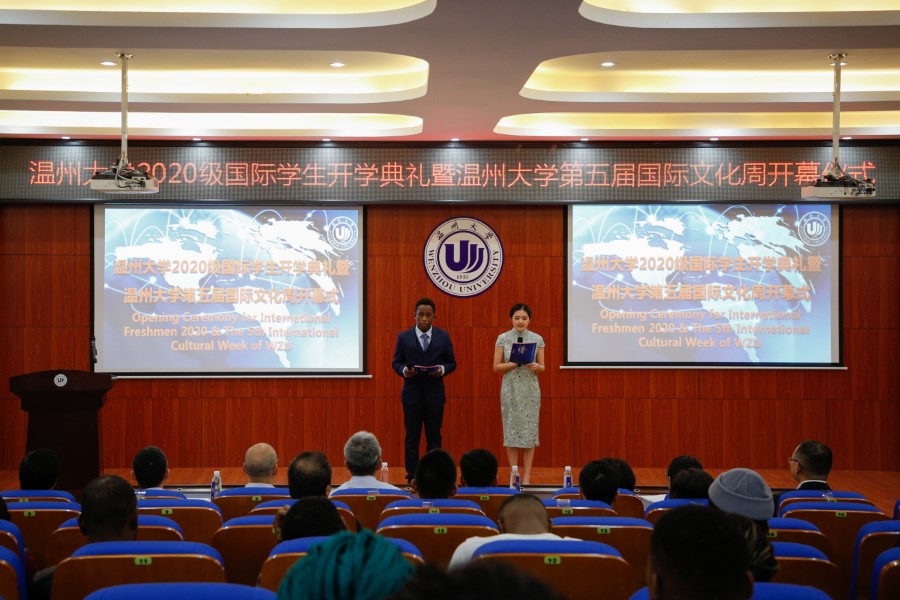 副校长钱强发表致辞,他简要介绍了温州概况及我校发展历史、办学特色和国际化发展现状。在全球人民共同抗击疫情的背景下,他勉励同学们珍惜在温大的学习时光,共同捍卫来来之不易的抗疫成果,他希望各位新生能够学习中国文化,用欣赏、包容、互鉴的态度看待世界上不同的文明,成为了解中国文化、胸怀宏大抱负又精通专业的中外交流使者。随后,国际化教师代表张珉璐发言,她鼓励大家用新的角度看待学习,怀着感恩之心互相帮助,在新学期里共同成长,为世界发展和自我成长做出应有的贡献。在校友代表发言环节,我校优秀校友ADOFO MICHAEL ADJEI为新生致辞发言,他曾是我校计算机专业的研究生,毕业后选择回到色情导航