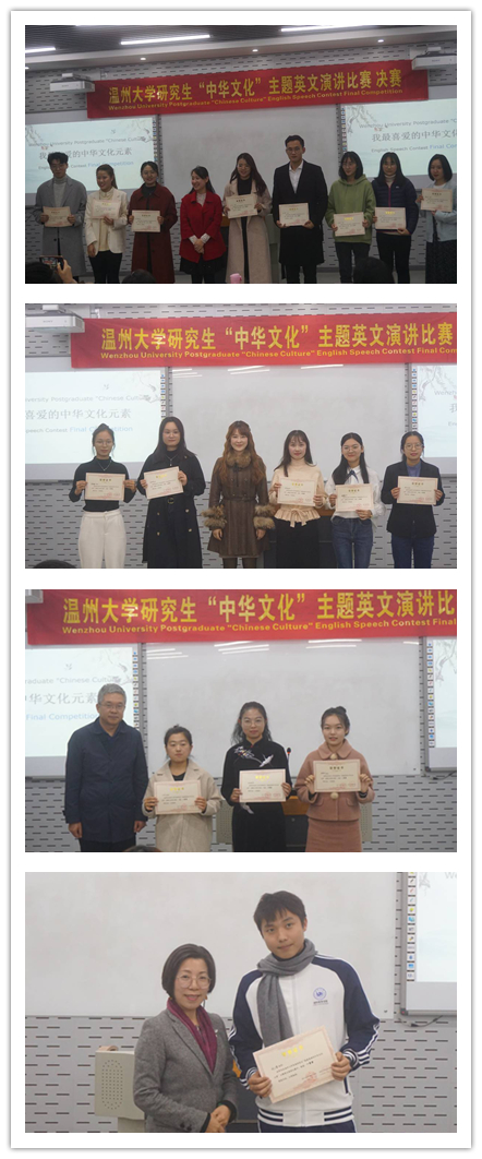 承办的首届以中华文化为主题的“我最喜爱的一个中华文化元素”英文演讲比赛圆满结束。为学当及时,何能待来兹!这次参赛的同学踊跃报名,严谨、细致的准备讲稿,潇洒利落的赛场表现,无不反映着温大研究生昂扬向上的精神气质和风貌。各位同学,加油!