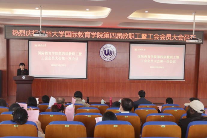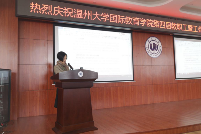 第四届教职工暨工会会员大会。会议由学院党总支书记林爱菊主持,全院教职工参加会议。