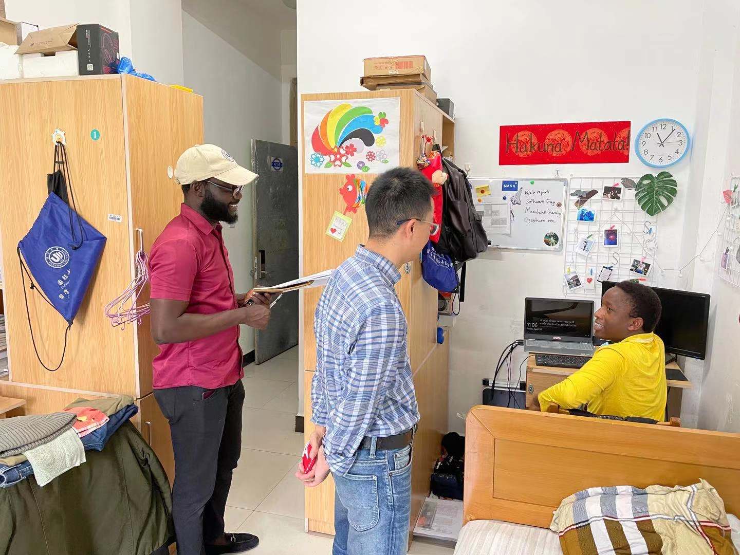 (留管部)学工办在国际学生D区公寓开展例行安全检查,学院党总支副书记方建晓、学工办全体辅导员参加。