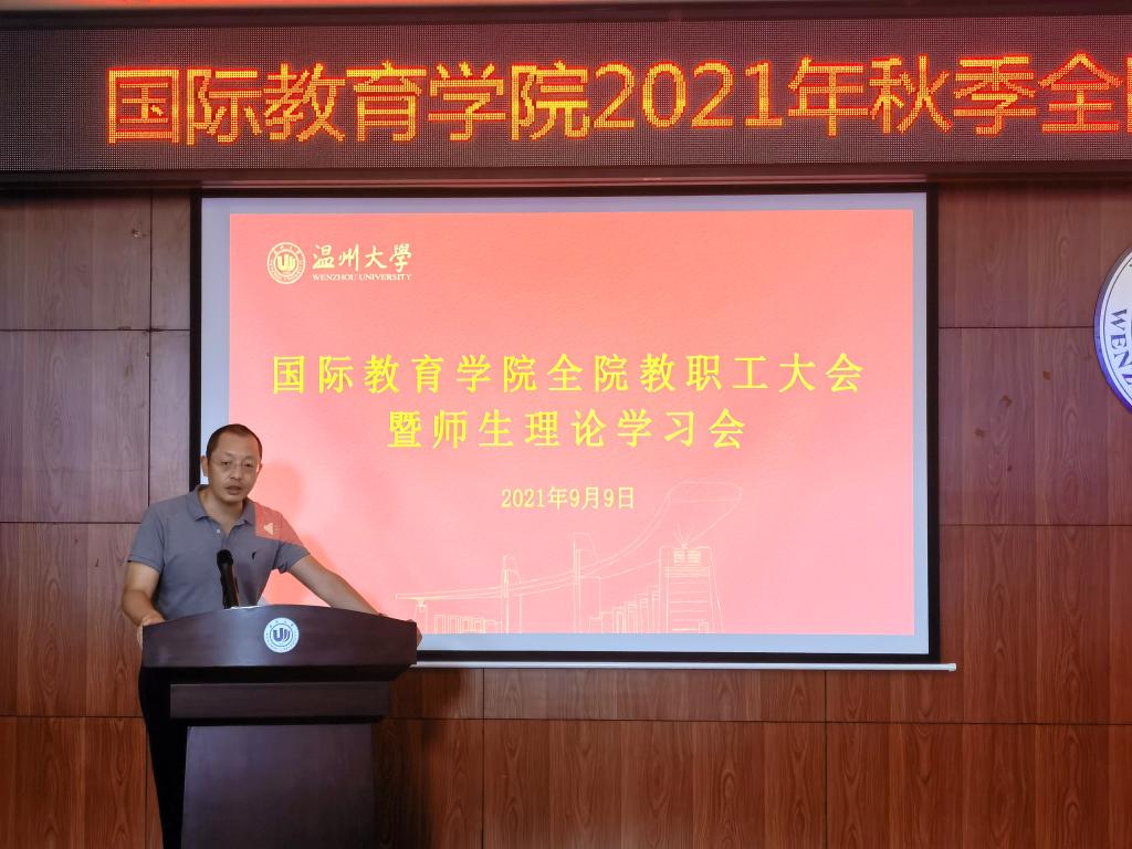 叶苗院长对学院上学期工作进行了总结,肯定了学院所取得的成绩,也指出了学院在某些方面的不足。同时对新学期工作进行了部署:学院要深入贯彻谢树华书记、赵敏校长在2021年秋季学期全校教职工大会上的相关文件精神,加强人才队伍建设,提高师资国际化水平;做好学科建设,为汉语国际教育与专硕点打造与时俱进的课程;做好做实人才培养,提高人才培养质量;做精做细国际生的日常管理,加强对国际生人文关怀;积极参与国际合作与交流,助力创办高水平的境外学校,不断创造国际化建设的华彩篇章。