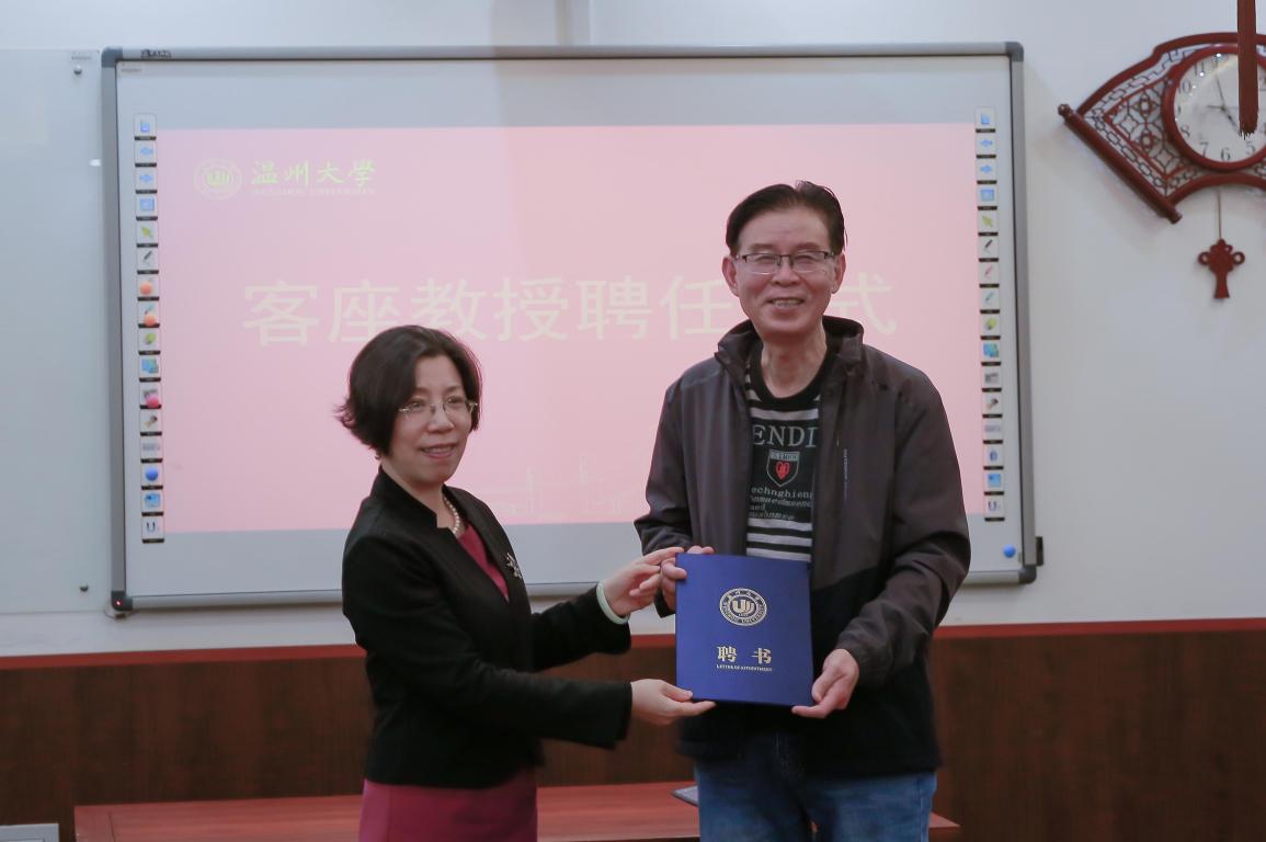 客座教授的聘书以感谢朱老师对我们的悉心指导,也希望朱老师能继续为IN WENZHOU双语杂志发光发热,为我中心的发展提供更大的支持。