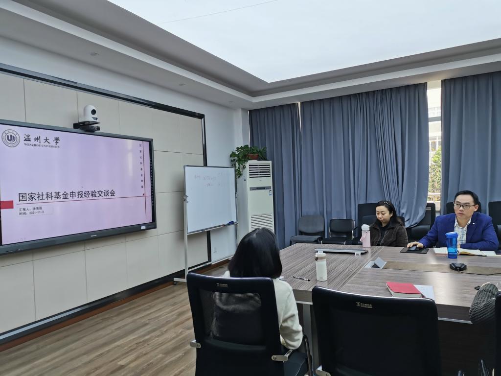 汉语国际教育教授郑娟曼和副教授涂海强(他们分别在2017年和2018年成功申报国家社科基金项目)为大家分享国家社科基金项目申报的心得体会。叶苗院长及教研室全体教师参加了此次会议,会议由吴之欧副院长主持。