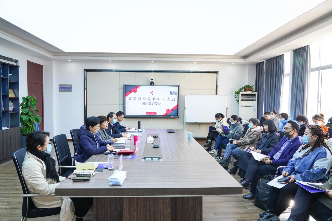 2021/2022第二学期新学期全体教职工大会在国教楼311会议室召开,会议由党总支书记林爱菊主持。